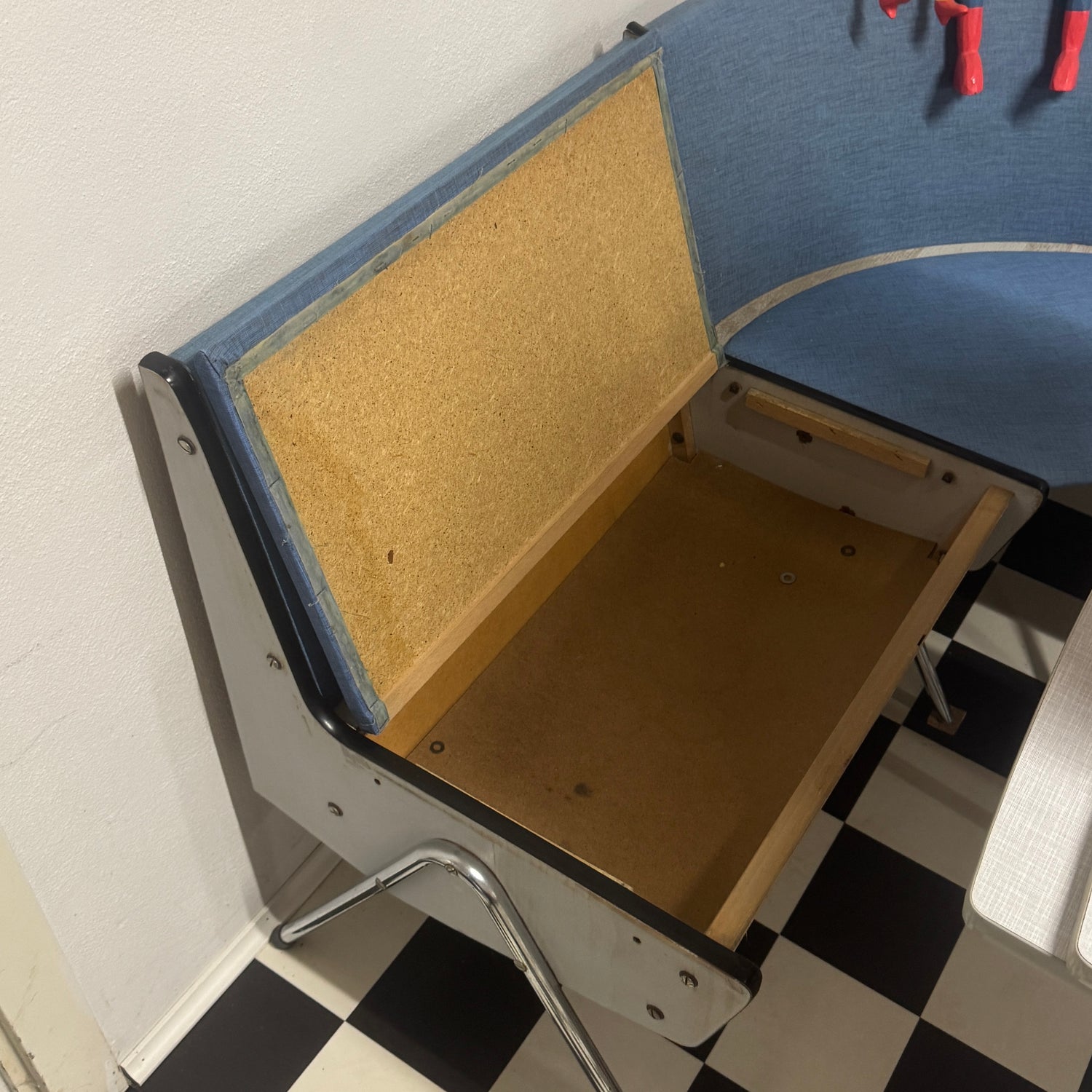 Retro diner sæt i farven blå, hjørne bænk med opbevaring.