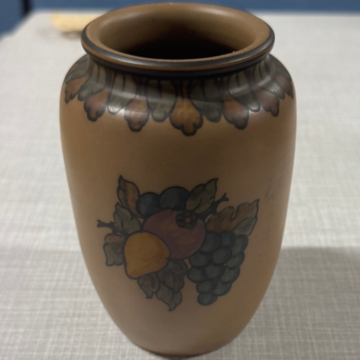 Fin lille vase med frugt motiv